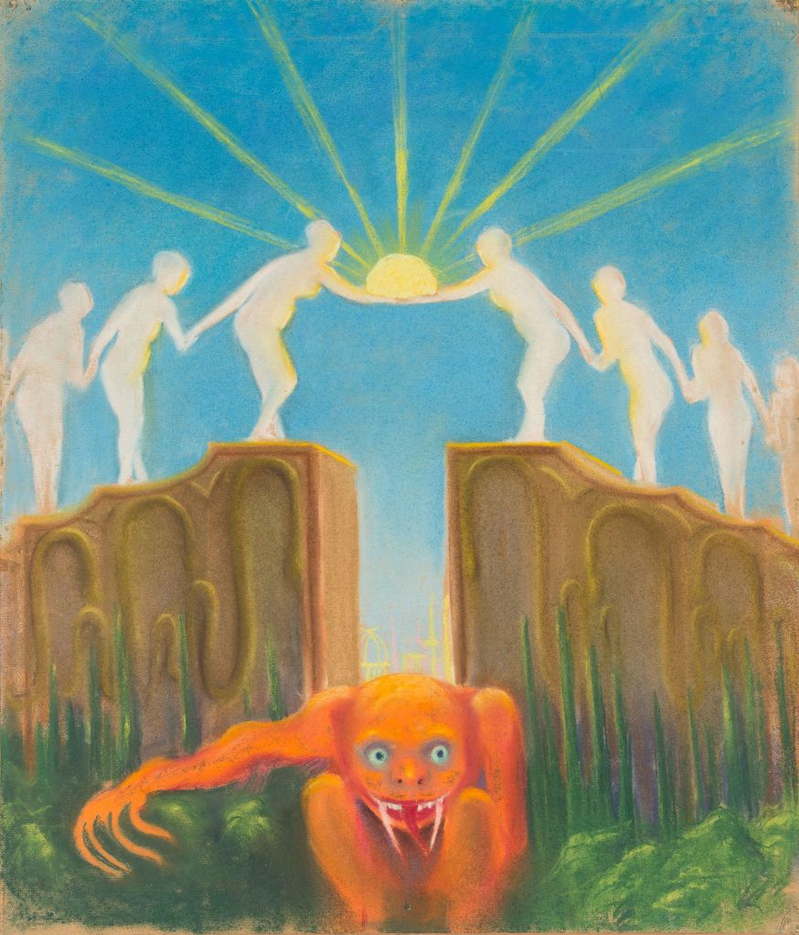 Per pirmą pamoką suskirstėme mokinius į dvi grupes (kiekvienoje – po tris pradinukus) ir davėme po vieną dailininko kūrinį iš ciklo „Pasaulio sutvėrimas“ (1905–1906). Iš pradžių remdamiesi penkiais pojūčiais mokiniai apibūdino gautą kūrinį savo grupėje, užsirašė kilusius žodžius, vėliau turėjo juos pavartoti kurdami vaizdingą paveikslo aprašymą.