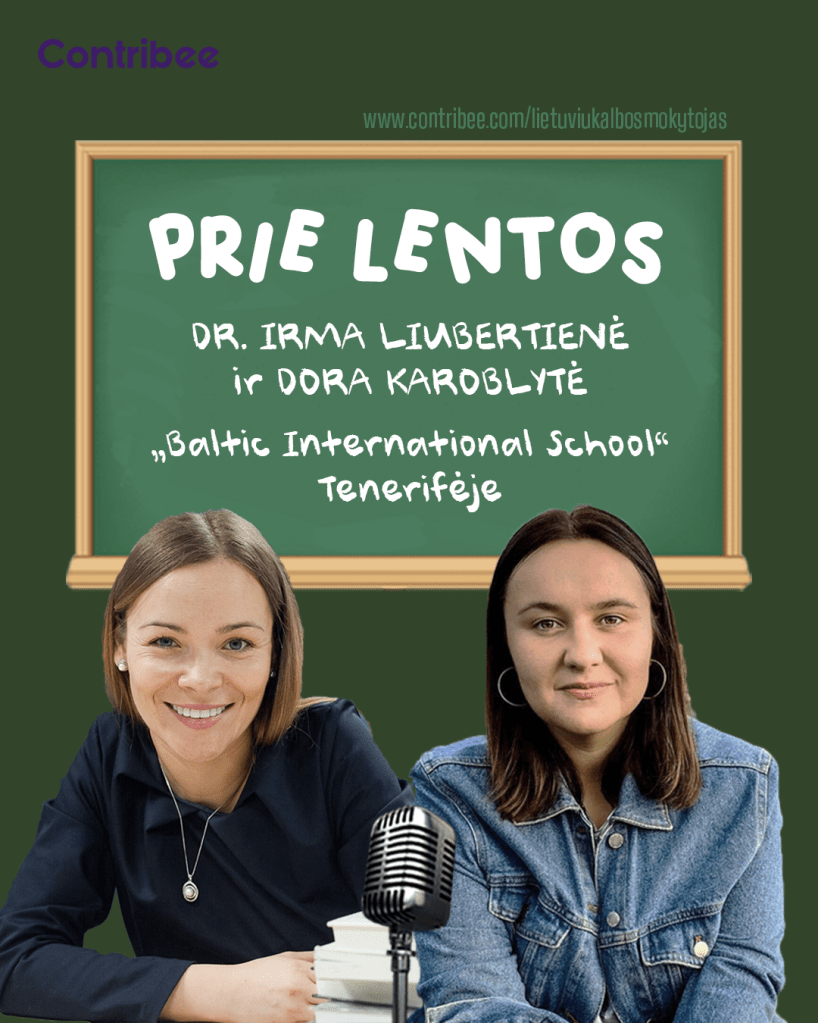 Už priėmimą ir galimybę mokyti(s) dėkoju „Baltic International School“, kuri, atrodo, turi viską. Ne tik vandenyną už lango, bet ir draugiškus mokytojus, mielus ir žingeidžius mokinius, savitą mokyklos filosofiją… Jeigu norite sužinoti daugiau, „Spotify“ platformoje nemokamai klausykitės dešimtojo tinklalaidės „Prie lentos“ epizodo, kuriame mokyklos steigėja dr. Irma Liubertienė ir ugdymo vadovė, mokytoja Dora Karoblytė plačiau pasakoja apie mokyklą ir gyvenimą Tenerifėje. O jeigu norite ne tik išgirsti, bet ir patirti patys, pasidomėkite projektu, kurį vykdo Nacionalinė švietimo agentūra (NŠA). Jis vadinasi „Tęsk: ateik, tobulėk, prisidėk!“ ir yra skirtas šiuo metu mokykloje dirbantiems pedagogams.
